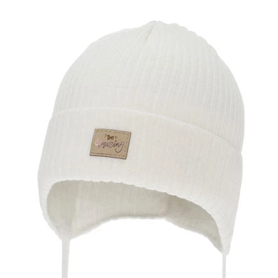 Dívčí podzimní/jarní čepice, bílá, zavazovací, s bavlnou, Tindra