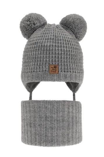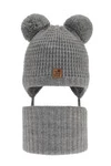 Kompletná zimná detská sada: šedý čiapka a šál s dvoma mašľami Krispi