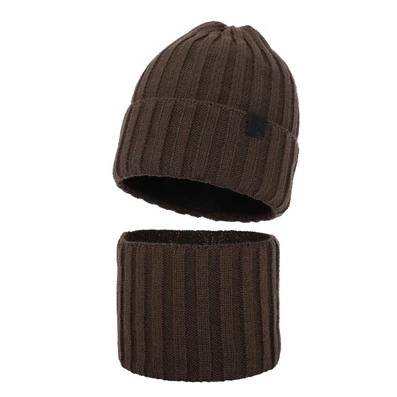 Komplet zimní chlapecký: čepice a tunel hnědý Baster