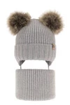 Kompletná zimná detská sada: šedý čiapka a šál s dvoma mašľami Tokio