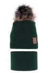 Komplet zimní dívčí: čepice a tunel zelený s bambulí Apolinka