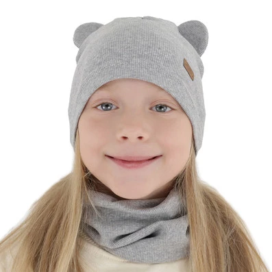 Komplet podzimní, jarní dívčí: čepice a tunel, bavlněný, šedý Georgea