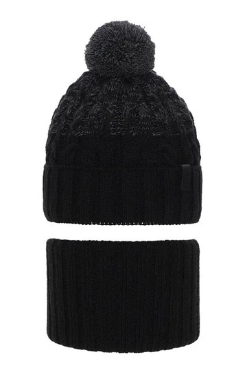 Komplet zimní chlapecký: čepice a tunel černý s bambulí Travis