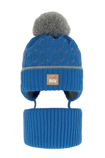 Komplet zimní chlapecký: čepice a tunel modrý s bambulí Pikolo