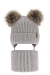Komplet zimní chlapecký: čepice a tunel šedý s bambulí Karmel