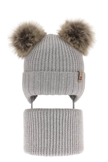 Komplet zimní chlapecký: čepice a tunel šedý s bambulí Casper