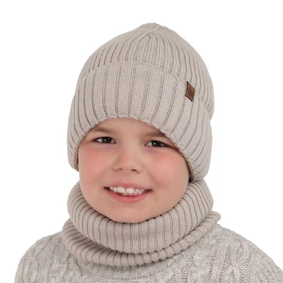 Komplet zimný chlapčenský: čiapka a tunel béžový z merino vlny Metis