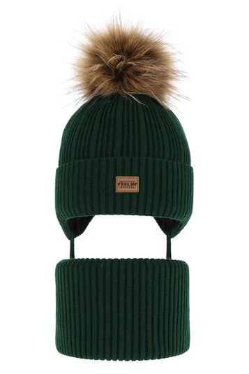 Komplet zimný chlapčenský: čiapka a tunel zelený s bambuľou Eger