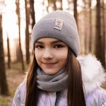 Komplet zimní dívčí: čepice a tunel šedý Sana