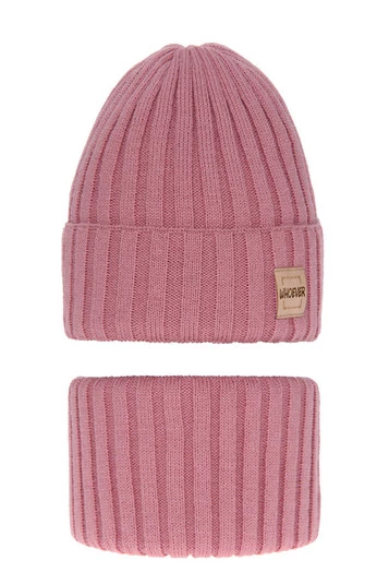 Komplet zimní dívčí: čepice a tunel růžový Sula