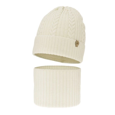Komplet podzimní/jarní dívčí: čepice a tunel, s bavlnou, béžový Amarilla