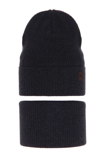 Komplet podzimní, jarní chlapecký: čepice a tunel, s bavlnou, černý, Eirik