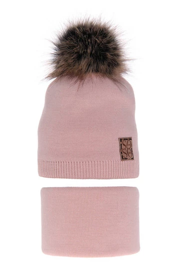 Komplet zimní dívčí: čepice a tunel camel se dvěma bambulemi Telisa
