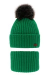 Kompletná zimná detská sada: čiapka a šál zelený s bambuľou Peter