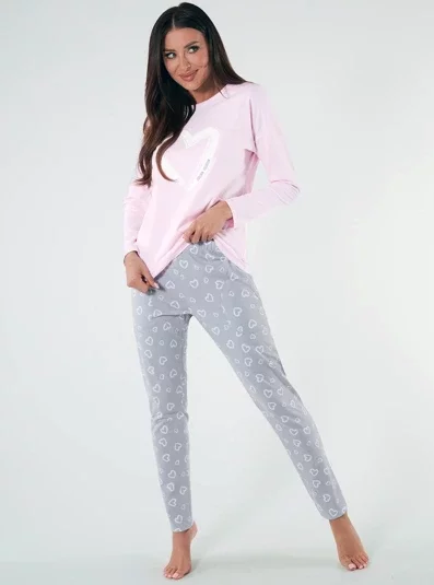Dámské pyžamo Betty s krátkým rukávem. dlouhé kalhoty grafit/grafitový potisk