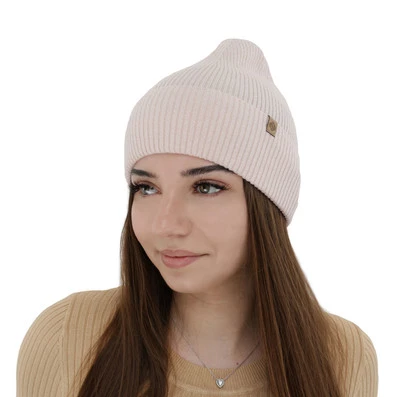 Dámská podzimní, zimní čepice, světle růžová, z merino vlny s kašmírem, Alineta