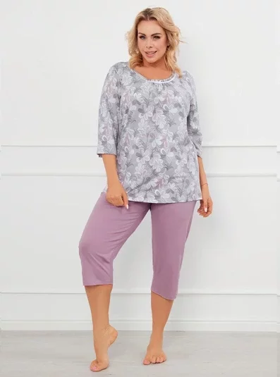 Dámské pyžamo Leta s krátkým rukávem. krátké kalhoty s pudrově růžovým potiskem