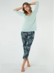 Dámské pyžamo Betty, 3/4 rukáv. dlouhé kalhoty cappuccino/potisk cappuccina