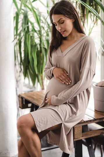 Měsíčně béžová bambusová těhotenská a kojící noční košile