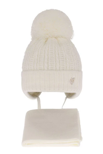 Set de iarnă pentru fete: căciulă și fular ecru cu pompon Marisa