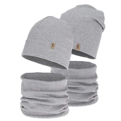 Komplet podzimní, jarní dívčí: čepice a tunel, bavlněný, šedý, Bravura