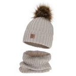 Komplet zimní dívčí: čepice a tunel, béžový, podšitý fleecem, s merino vlnou, Bellina