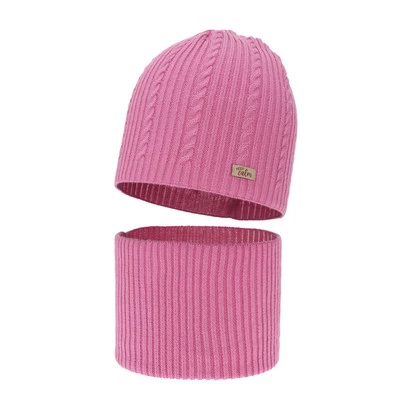Komplet podzimní, jarní dívčí: čepice a tunel, s bavlnou, růžový, Ordesa