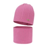 Čepice a tunel podšitý fleecem pro dívky zimní komplet, růžový, s merino vlnou, Odette