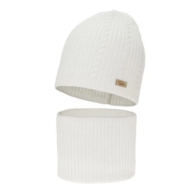 Komplet podzimní, jarní dívčí: čepice a tunel, s bavlnou, krémový, Ordesa