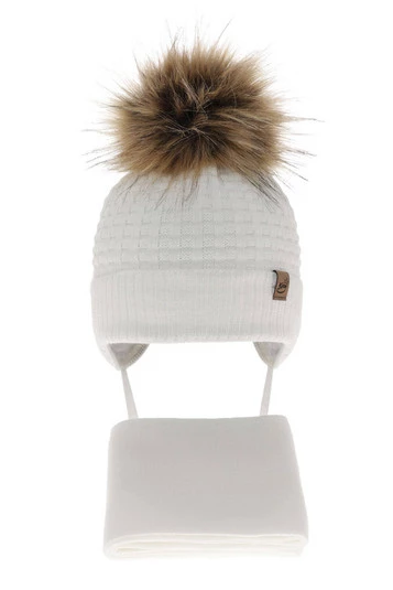 Komplet zimní dívčí: čepice a šála bílý s bambulí Mirella
