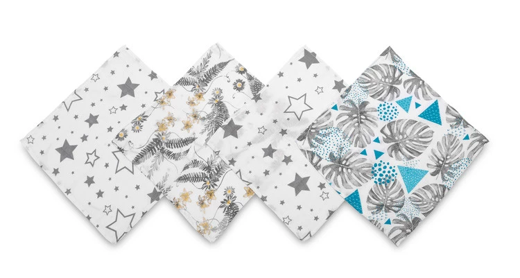 Močové pleny jsou mušelínové pleny o rozměrech přibližně. 35×35 cmkteré jsou naplněny 4. Nabízíme je ve 2 barevných sadách: modré a růžové. Vyrobeno z měkké bavlny, která nedráždí dětskou pokožku a nezpůsobuje alergie. Plenky této velikosti dobře poslouží jako ubrousky, flanelky, šátky nebo opalovací krémy. Balení obsahuje 4 kusy.