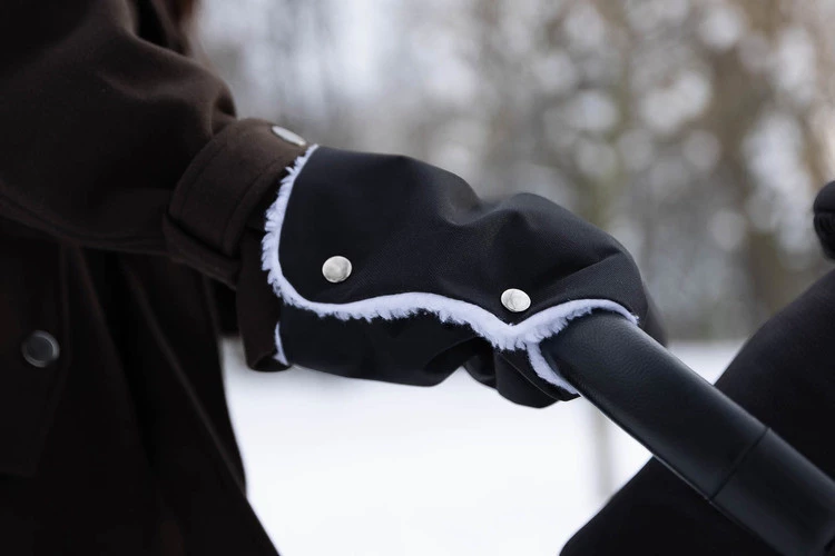 Podzimní a zimní procházky s kočárkem zahrnují vystavení rukou větru, dešti a sněhu. Rukavice na vozík je receptem na tyto nepříjemnosti. Chrání ruce proti nepříznivým povětrnostním podmínkám a usnadňuje péči o dítě - už nemusíte střídavě navlékat a svlékat rukavice. Mufa se připevňuje pomocí přítlačných čepů k rukojetím kočárku nebo sáněk, takže se může dobře si udržuje svou pozici. Vnější strana je pokryta voděodolný materiálzatímco vnitřní vrstva se skládá z měkká a hřejivá tkanina "ovčí kůže".