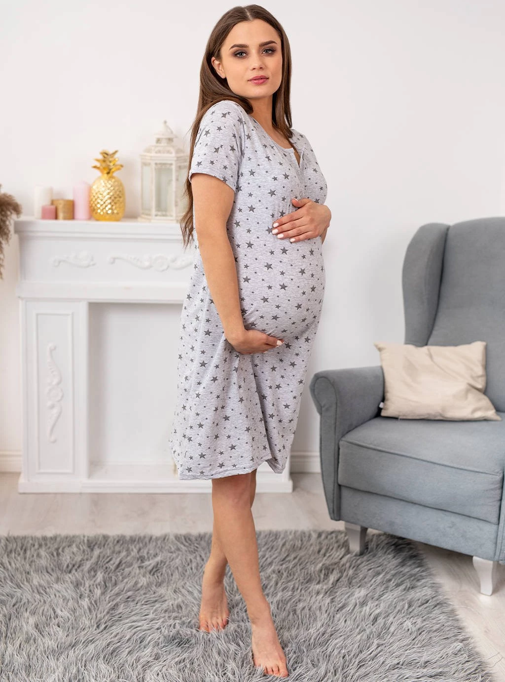 Těhotenská košile s hvězdičkami na knoflíky je vzdušná košile ze 100% bavlny, bezpečná pro novorozence, nealergizující a měkká na dotek pro maximální pohodlí, které splní všechna vaše očekávání.