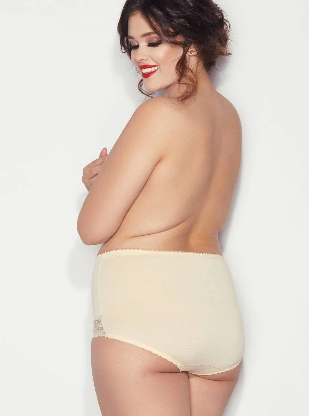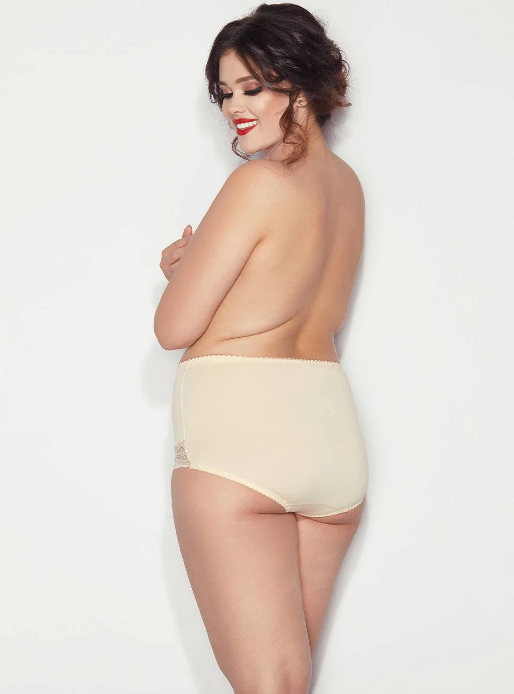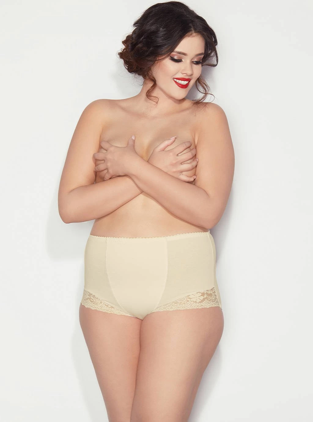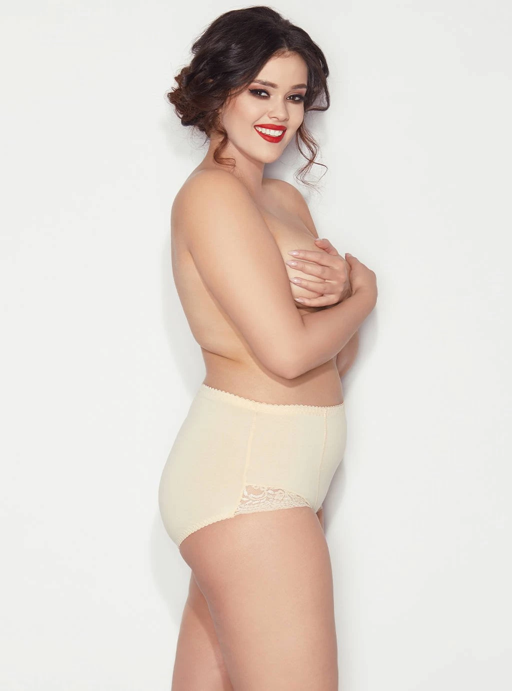Nejprodávanější kalhotky Ela. Bavlněné vyšší tvarující kalhotky. Díky dvojité vrstvě úpletu všité do přední části jemně zplošťují a tvarují břicho. Nohavičky v přední části jsou zakončeny jemnou krajkou.