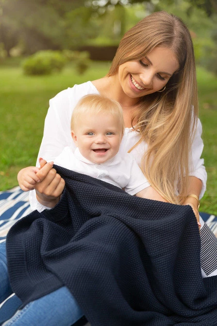 Námořnická modrá je pohodlná, univerzální barva, která sluší klukům i holčičkám a bude perfektním doplňkem do kočárku na procházku nebo do postýlky vašeho miminka. Pletená, lehká a měkká bavlněná deka je dokonalá kombinace, kterou žádná mladá maminka nemůže ignorovat. Vyberte si tu nejkvalitnější bavlnu a cool styl v jednom – vyberte si měkkou bavlněnou deku, která zajistí termoregulaci vzduchu, když si vaše dítě hraje a zdřímne. Tato krásná dětská deka se nedeformuje a neztrácí barvu ani po opakovaném praní na 30 stupňů. A pokud sháníte něco jako dárek na Baby Shower, skvělým nápadem a trefou budou i naše elegantní, barevné deky od polské značky Sensillo z lehkého úpletu!