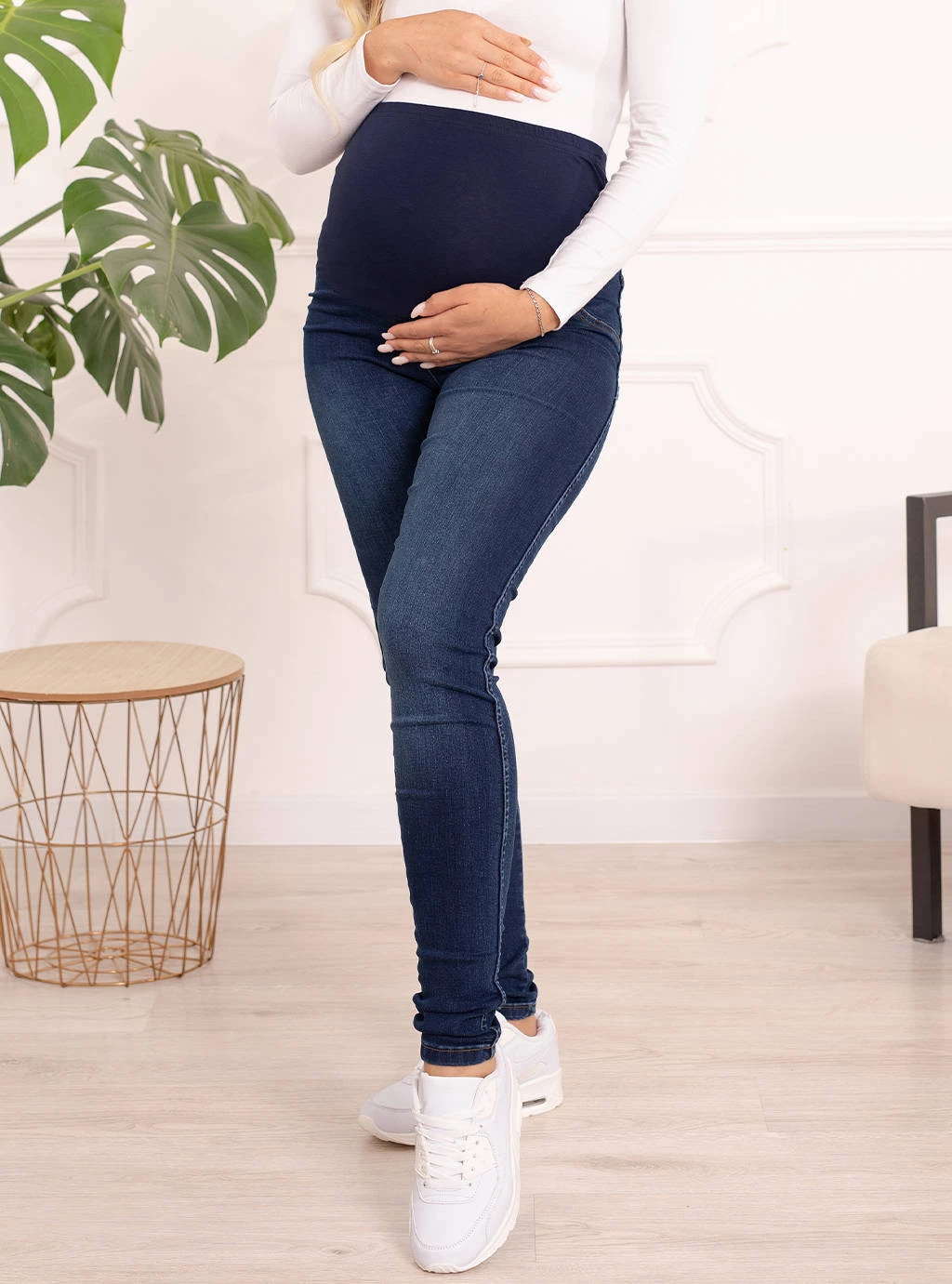 Těhotenské džíny je nezbytnou součástí šatníku každé nastávající maminky. Představovaný model je vyroben z tmavé džínoviny se stylově ohrnutou nohavicí. Jsou velmi pohodlné a přiléhavé, aniž by obepínaly bříško nebo omezovaly pohyb. Jistě oceníte jejich pohodlí! Materiál, ze kterého jsou vyrobeny, je velmi příjemný a příjemný na dotek, takže jsou velmi šetrné k naší pokožce. K dispozici je řada velikostí pro každou ženskou postavu, od S do 3XL. Nebojte se, určitě najdete něco, co vám bude vyhovovat.