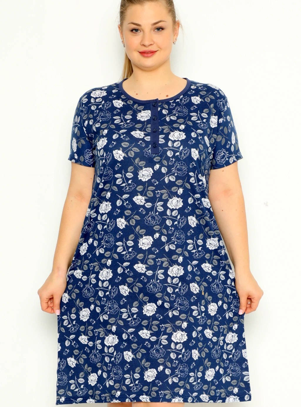 Těhotenská košile Bílé růže - tmavě modrá