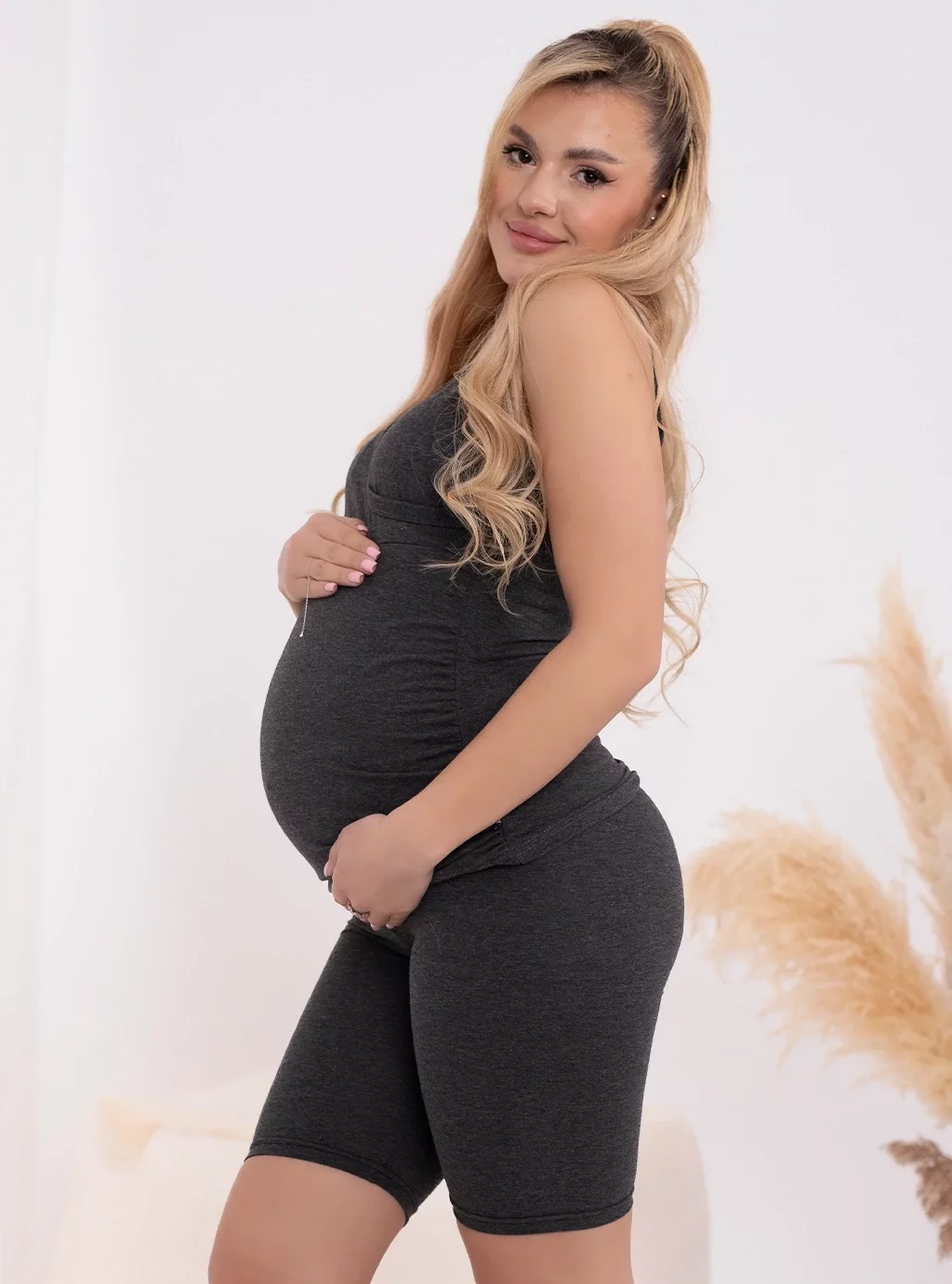 Zvolte pohodlí, komfort a cool vzhled již od začátku těhotenství! Vyberte si módní krátká těhotenská kola, která jsou speciálně navržena tak, aby zajistila pohodlí budoucí maminky. Pohodlný břišní panel v těchto univerzálních šedých elastických těhotenských legínách se přizpůsobí rostoucímu bříšku, takže bude perfektním doplňkem šatníku budoucí maminky.