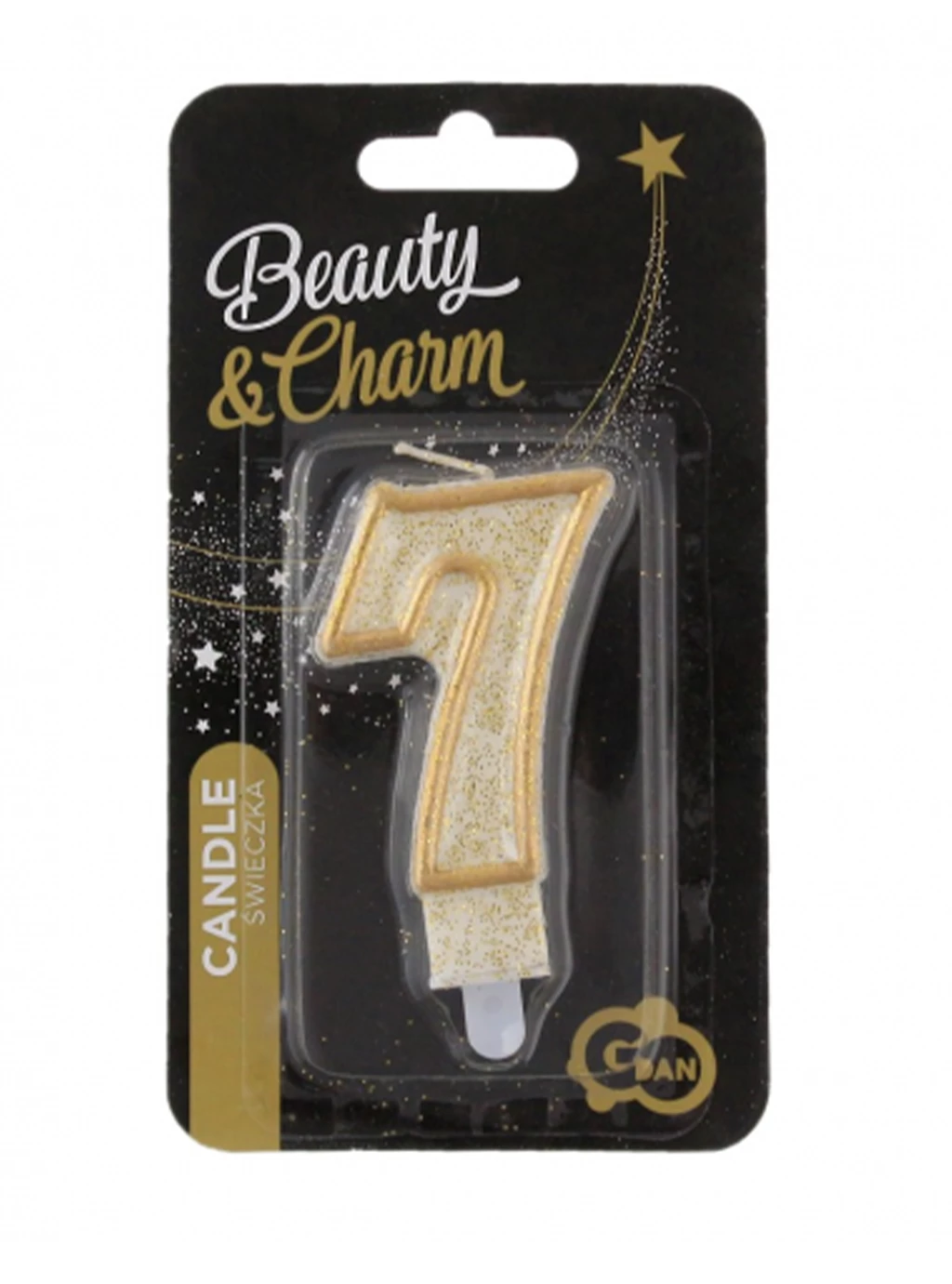 Svíčka B&C číslo "7" - Zlaté třpytky