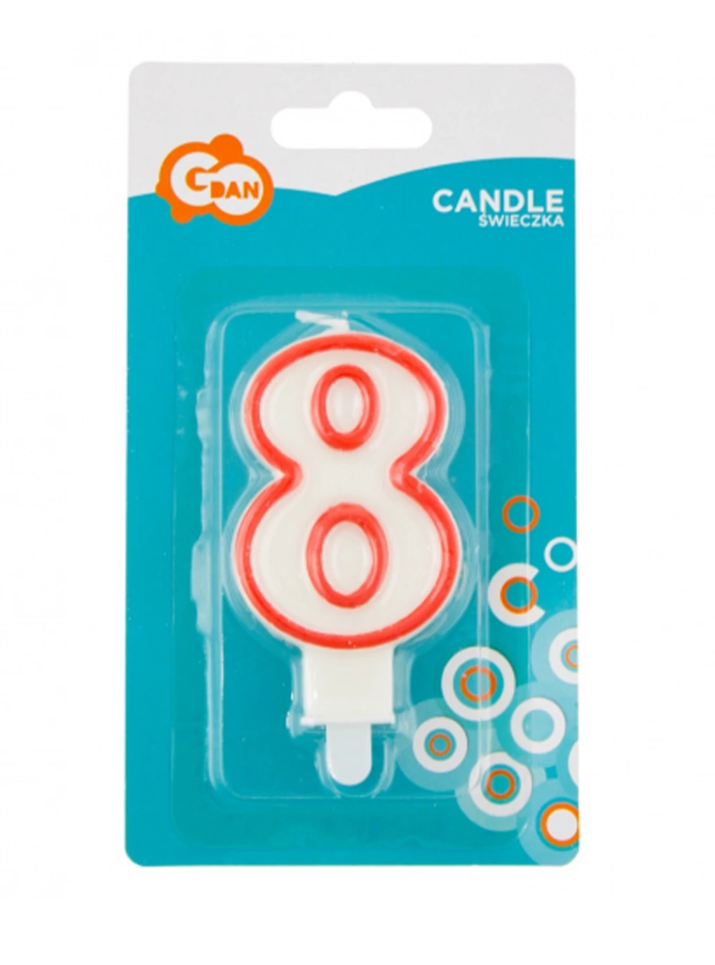 Narozeninová svíčka "8" v červené kontuře - červená kontura.