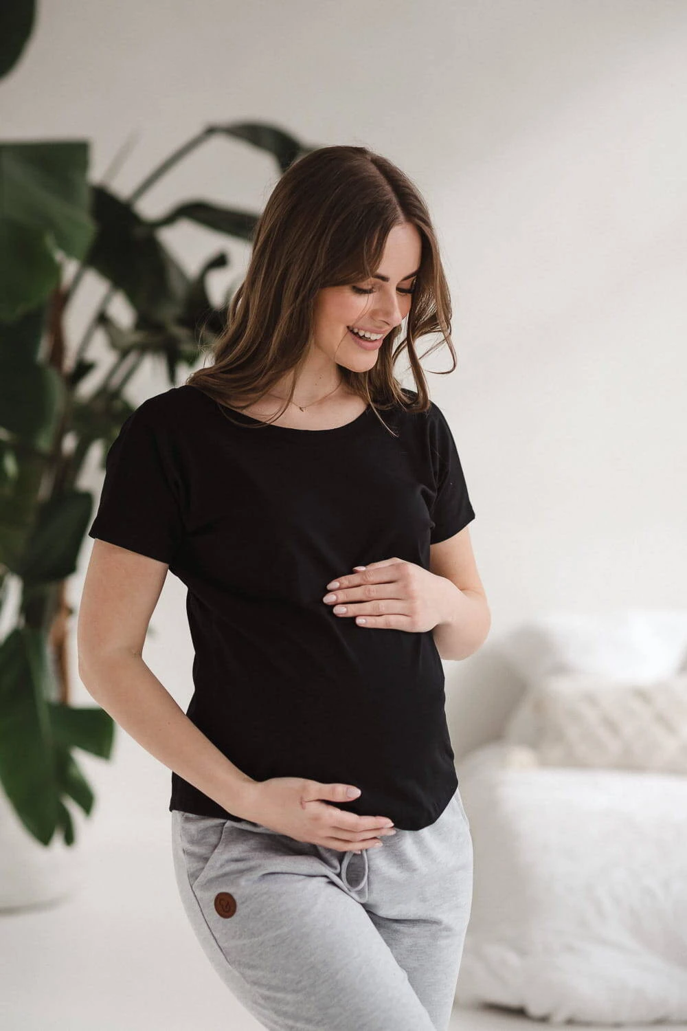 Těhotenská a kojící halenka Two Ways s krátkým rukávem - Černá