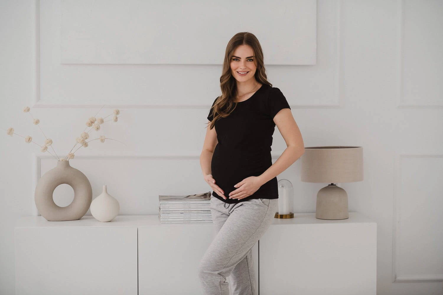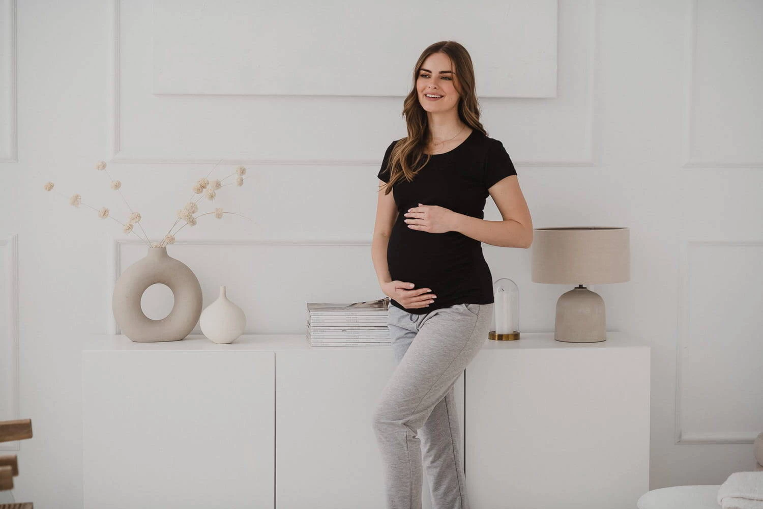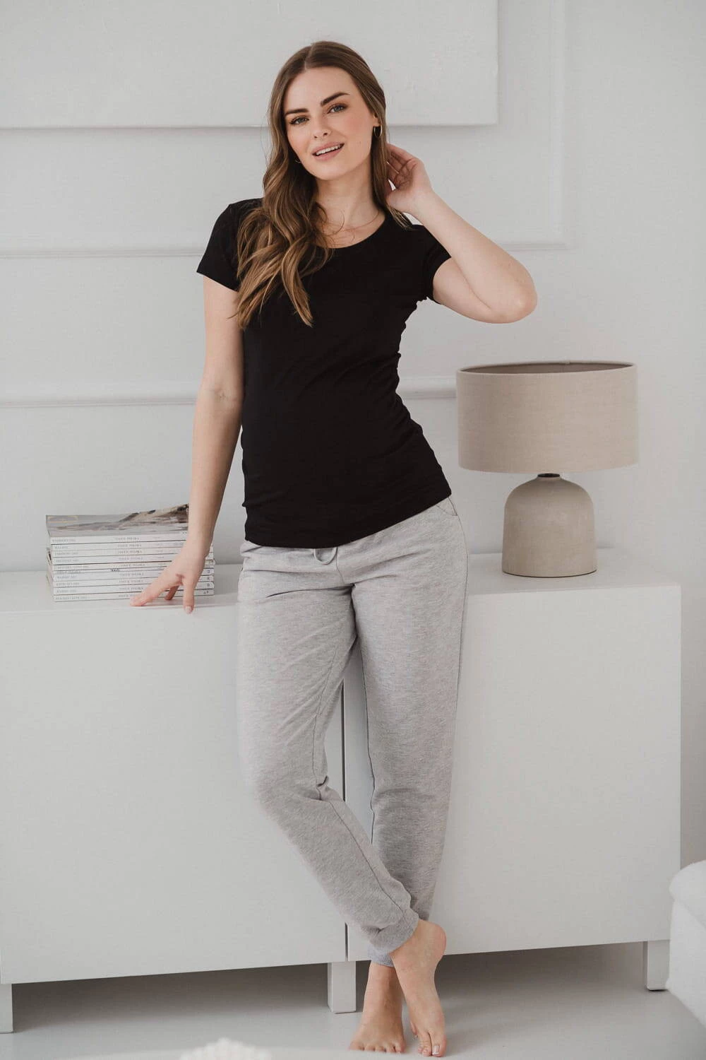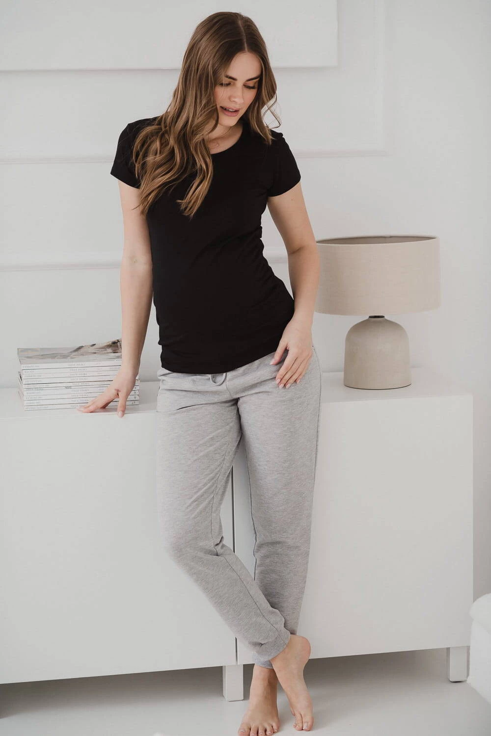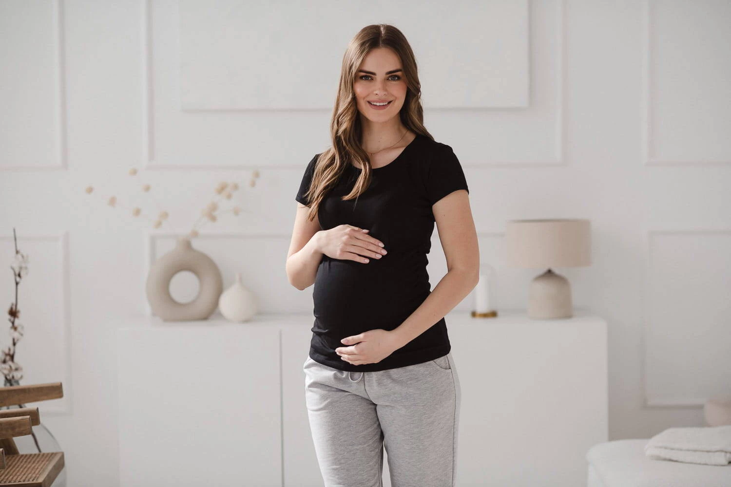 Těhotenská halenka s krátkým rukávem na břiše - Černá