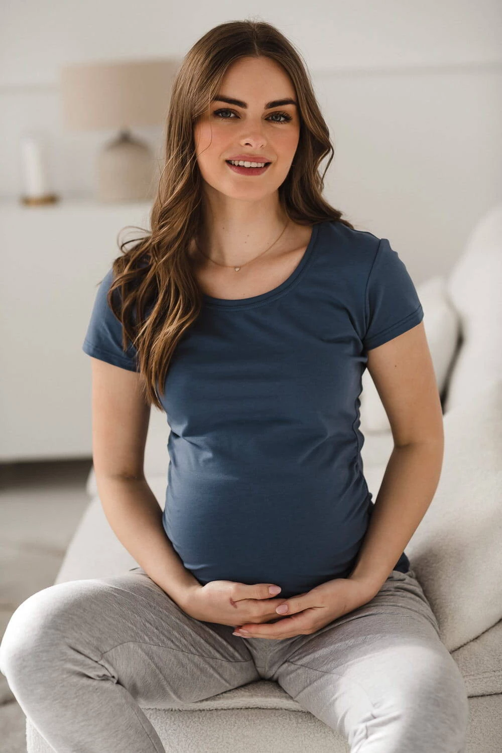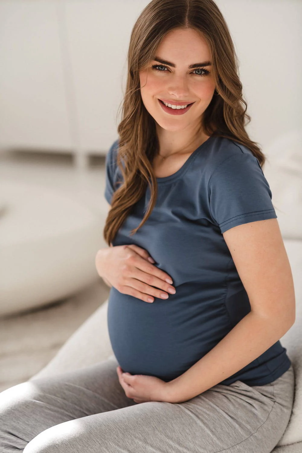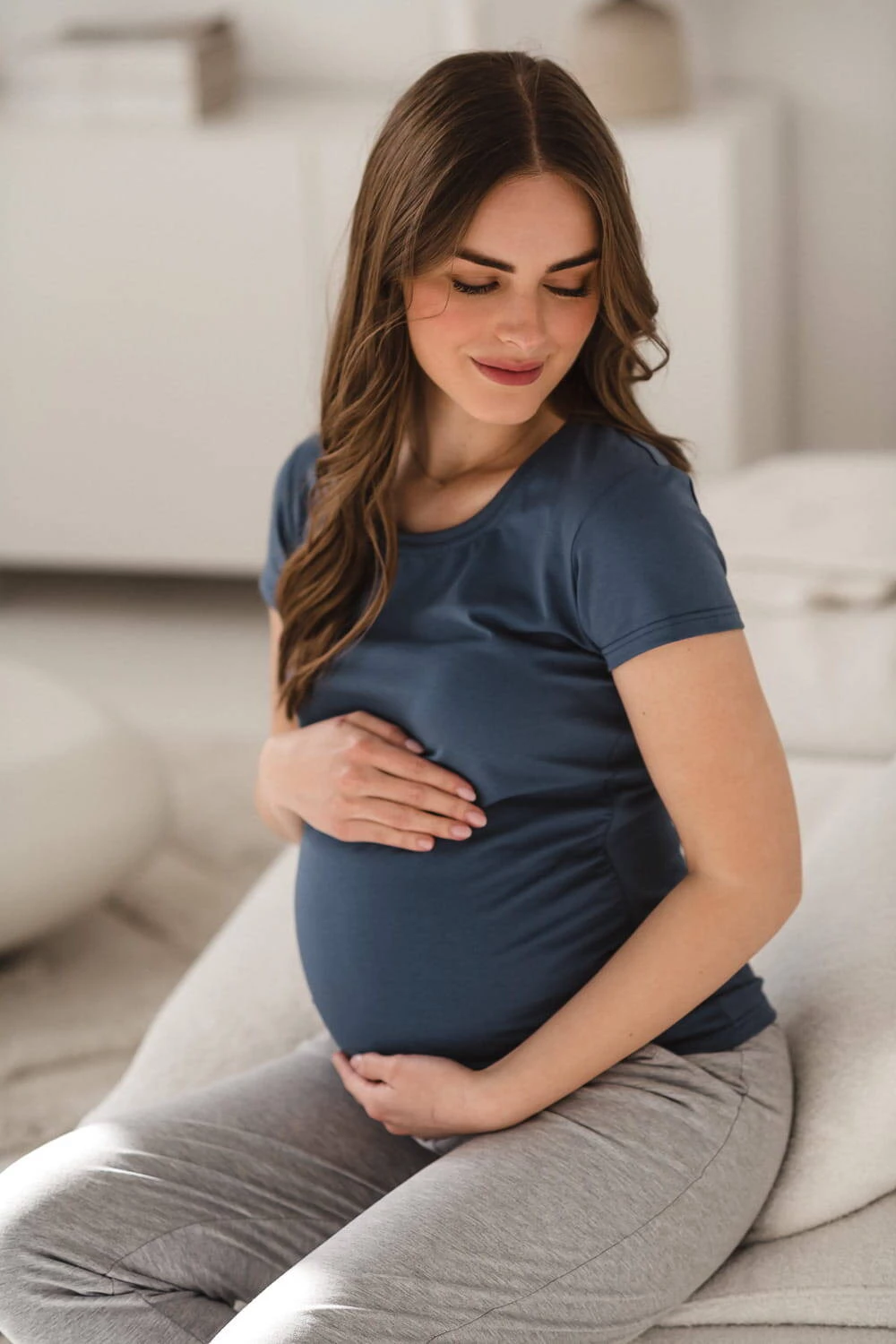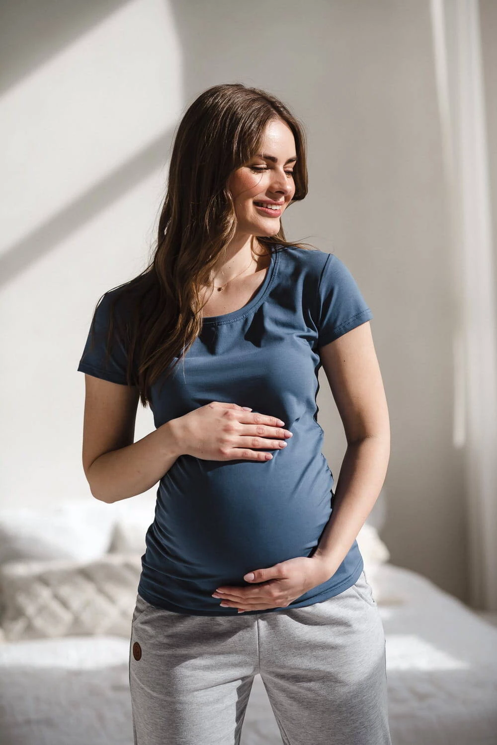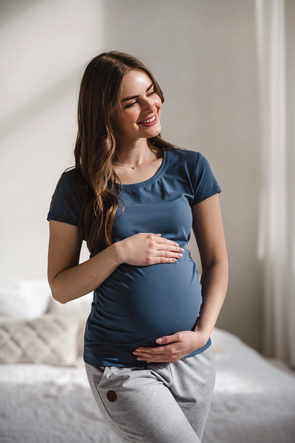 Břišní těhotenská halenka s krátkým rukávem - Modrá