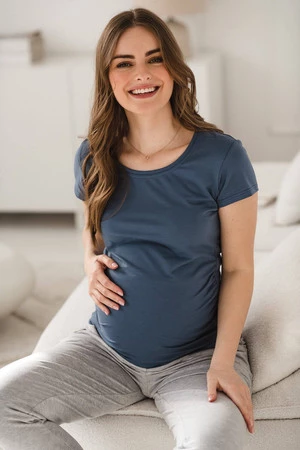 Břišní těhotenská halenka s krátkým rukávem Modrá