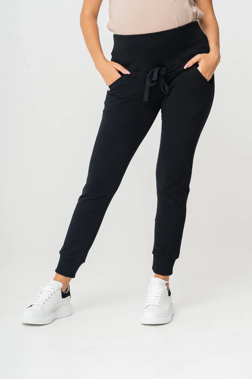 Joggery a těhotenské kalhoty pro těhotné NIKDY WALK ALONE jsou nejen pohodlné, ale i praktické. Módní černé těhotenské kalhoty mají na bocích hluboké kapsy, které se skvěle hodí na drobnosti, a úzké nohavice s manžetami dodávají siluetě lehkost a ladnost. Praktické těhotenské kalhoty pro budoucí maminky se skvěle hodí pro každé roční období - dají se nosit s tričkem v teplejších dnech nebo s teplou mikinou v chladnějších měsících.