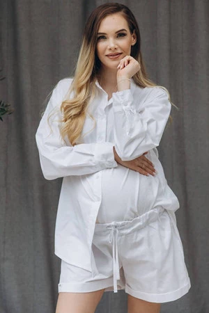 Pohodlné těhotenské šortky mají i praktické detaily. Volný střih a široké nohavice zajišťují pohodlí a umožňují plnou volnost pohybu. Těhotenské šortky mají také boční kapsy, které jsou ideální pro uložení drobností, jako jsou klíče nebo telefon, což přidává funkčnost. Bílá barva pohodlným těhotenským šortkám dodává eleganci a všestrannost, takže je lze snadno kombinovat s různými kusy oblečení a vytvářet jedinečné těhotenské styly. Můžete je nosit jak každý den, tak na formálnější příležitosti, vždy se budete cítit pohodlně a stylově. Dokonale se hodí ke světlým halenkám, těhotenským košilím a volným tunikám a vytvářejí originální a módní styly.