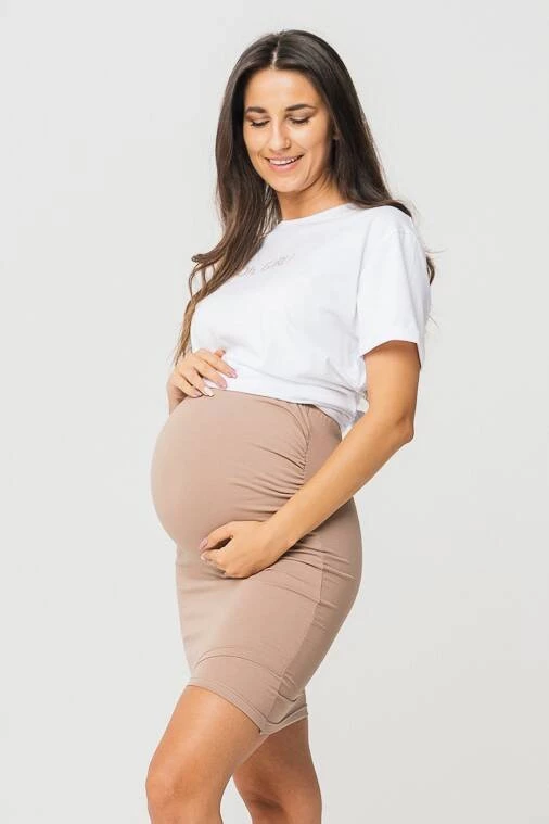 Klasická béžová těhotenská sukně "Latte Mama" byla vytvořena s ohledem na pohodlí a pohodlí budoucích maminek. Vyrobeno z velmi pružné bavlněné tkaniny, perfektně se přizpůsobí rostoucímu bříšku a poskytuje výjimečný komfort po celou dobu těhotenství. Sukně pro těhotné ženy, ideální také na nošení po těhotenském dobrodružství, kdy se tělo zotavuje. Díky pružnému materiálu je dámská těhotenská sukně neomezená a extrémně pohodlná na každodenní nošení.