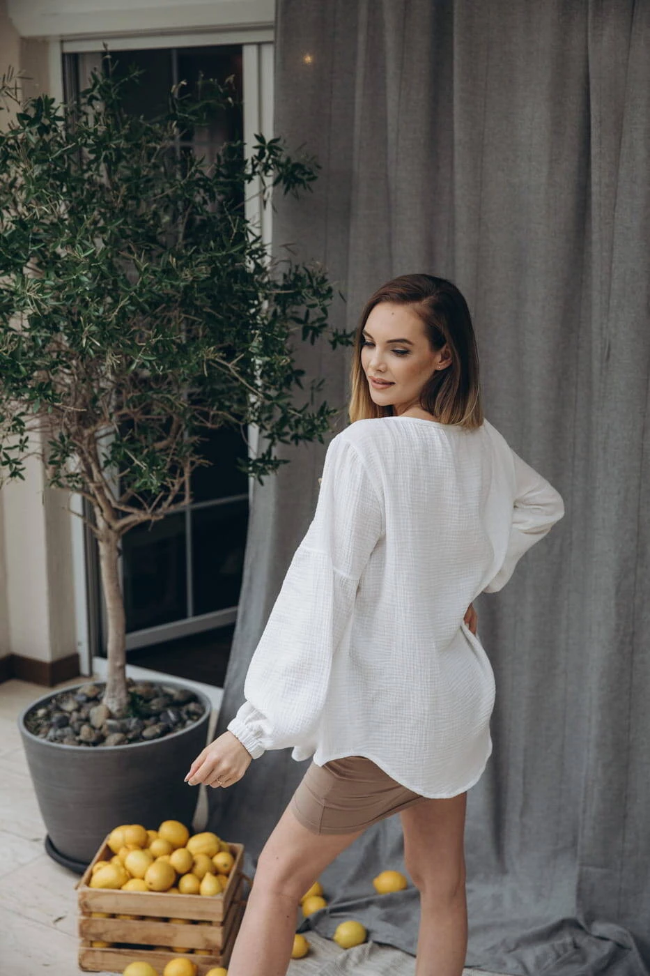 Volný střih košile poskytuje volnost pohybu a další prostor pro rostoucí těhotenské bříško. Díky oversize střihu je košile perfektní v jakékoli fázi těhotenství a nabízí maximální pohodlí. Stylový vzhled košile umožňuje kombinovat ji s různými oděvními prvky, jako jsou legíny, sukně nebo džíny, což umožňuje vytvářet outfity vhodné pro různé příležitosti. Bílou mušelínovou košili lze díky modernímu designu a praktičnosti nosit jak každý den, tak i při formálnějších schůzkách. Košile je nejen funkční, ale i elegantní, což z ní dělá výbornou volbu pro maminky v každé fázi mateřství i mimo něj, protože oversized střih je v módě už léta. Měkký, prodyšný materiál umožňuje pohodlné nošení po celý den a moderní vzhled dodává eleganci a styl každému stylu. Košile byla ušita v Polsku, z nejkvalitnějšího bavlněného mušelínu, díky pečlivému šití a zpracování bude sloužit dlouhá léta.