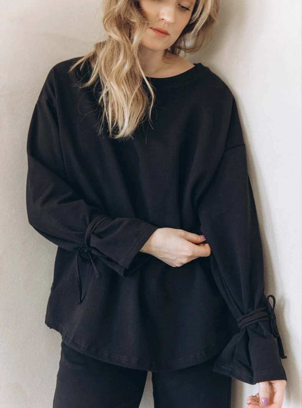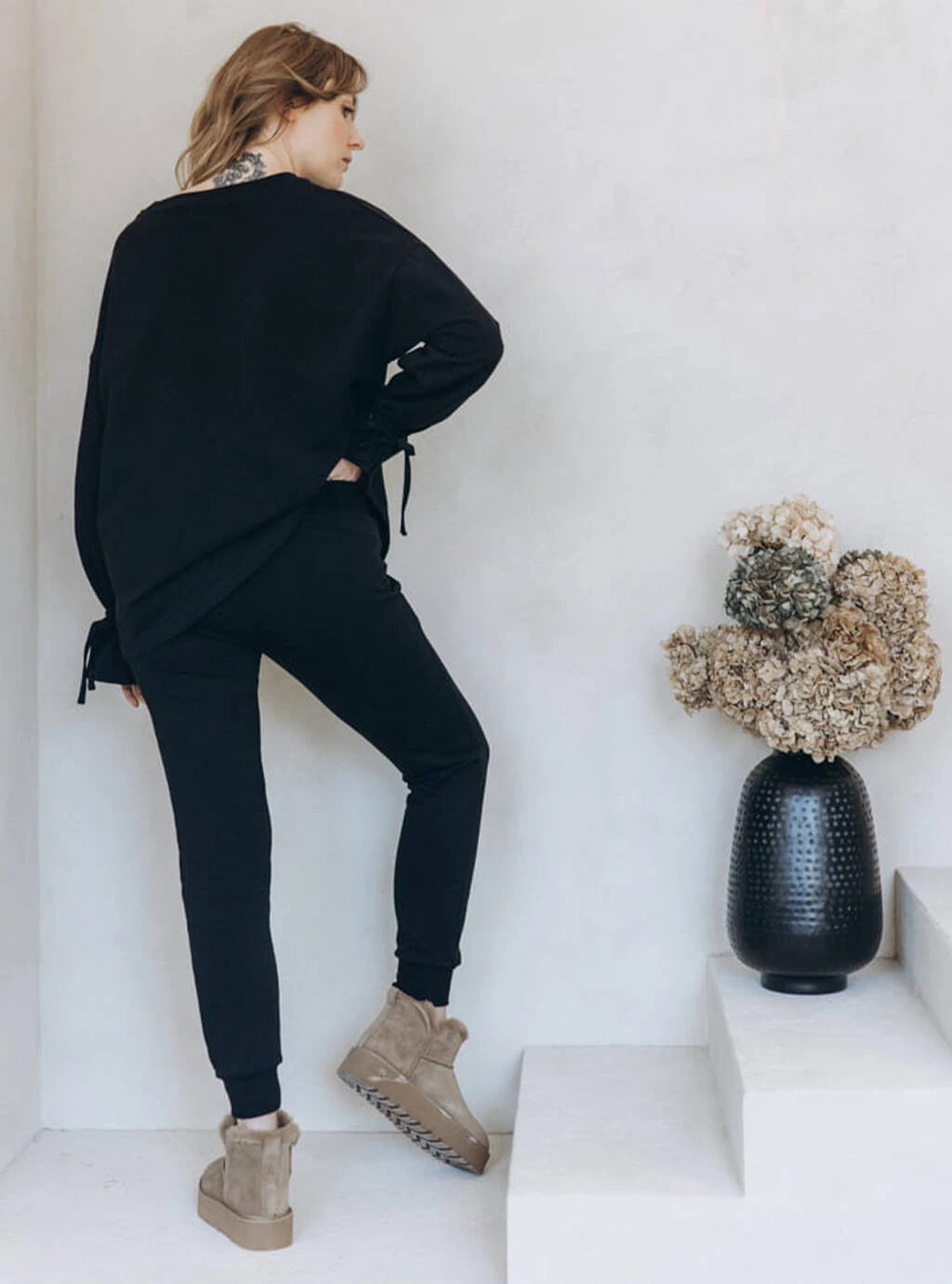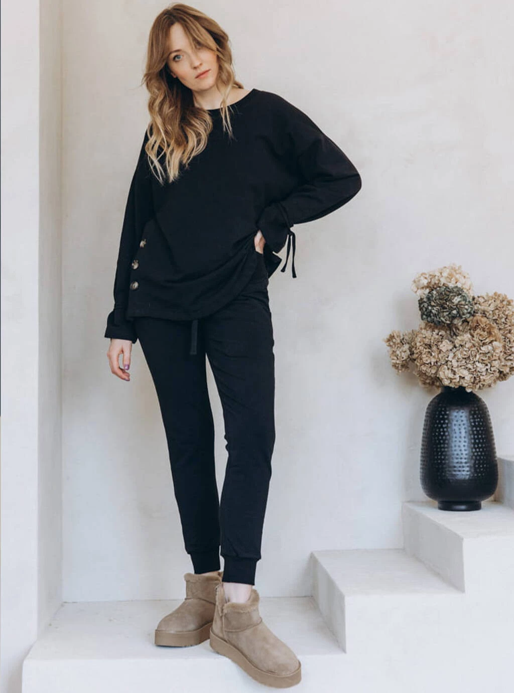 Těhotenská a kojící mikina se stahovacími šňůrkami - Černá