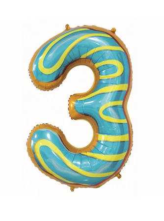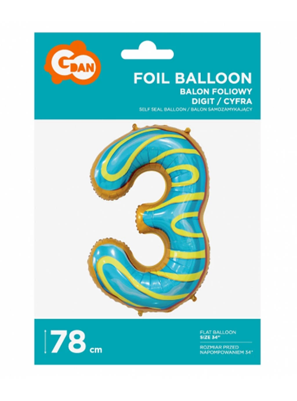 Fóliový balónek ve tvaru čísla 3 s potiskem sušenky s polevou je sladkou dekorací pro 3. narozeniny Vaše dítě, druhé výročí svatby a mnoho dalších příležitostí.